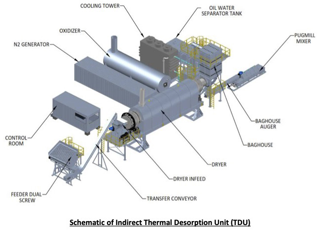 Thermal desorption is a cost effective and accurate environmental remediation technology that uses heat to increase the volatility of contaminants, so that they can be separated and removed from the solid matrix which typically is soil, oil-based mud drilling cuttings, sludge or filter cakes.